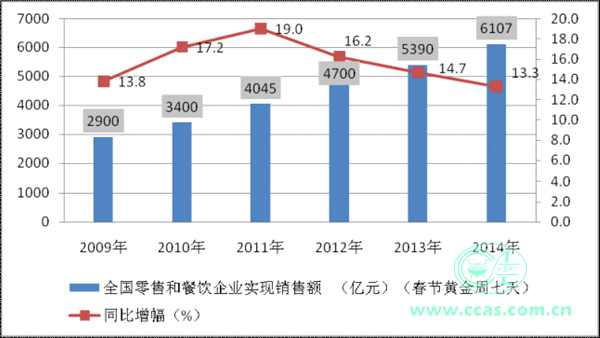图1. 2009-2014历年春节黄金周零售和餐饮市场表现