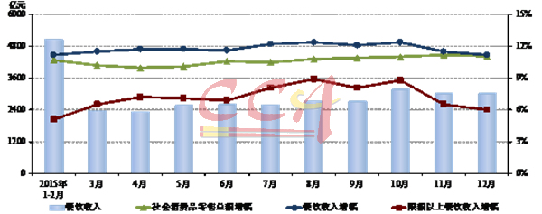 图2 2015年全国餐饮收入月度增长状况