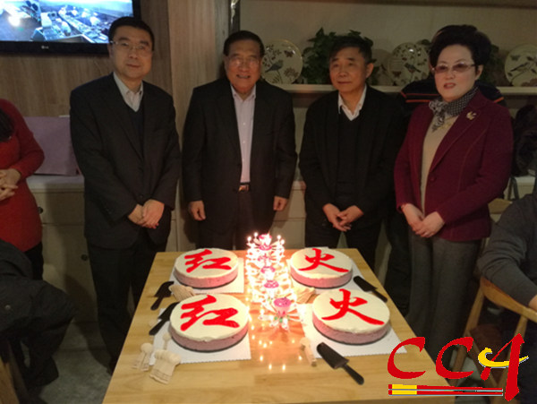 李亚光、赵申副会长与贾飞跃、高文慧总经理共同点燃2017红红火火的蜡烛