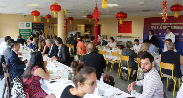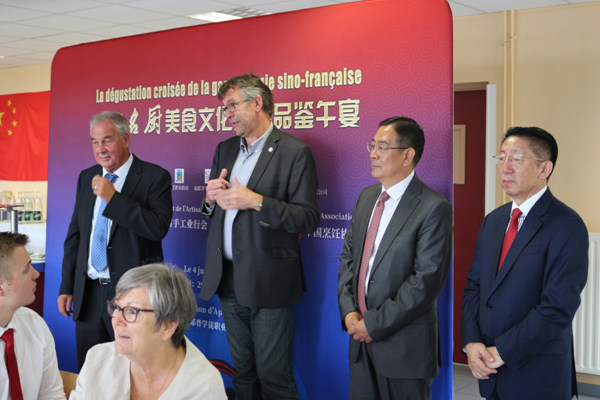 中国名厨在诺曼底两大名城巡回交流展演 2017-7-15 21:09:53 国际部 午宴现场悬挂了象征节日喜庆的中国灯笼迪耶普学徒职业教育中心门前挂起了中法国旗王海威副团长指导代表团成员设计展演菜点参加品鉴午宴主宾登台致辞(左一:迪耶普市市长、左二:滨省行会董事、左三:中国驻法国大使馆李少平参赞、左四:边疆副会长) [1] [2] [3] [4] [5] 下一页