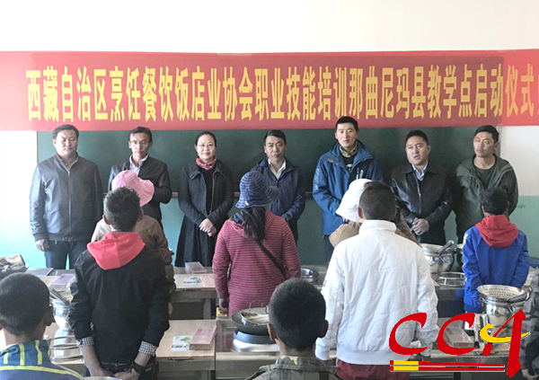 9月4日,西藏自治区烹饪餐饮饭店业协会职业技能培训那曲地区尼玛县教学点正式启动。参加启动仪式的有自治区工商联(总商会)副会长、区烹饪餐饮饭店业协会会长褚立群、尼玛县副县长次仁桑旦、尼玛县人社局局长普穷、尼玛县教育局局长旺多、区烹饪餐饮饭店业协会常务副会长兼秘书长沈斌、西藏现代服务业职业技能培训学校后勤主任平措旺堆、誉满福酒店用品总经理张洪军及尼玛县职教中心负责人。